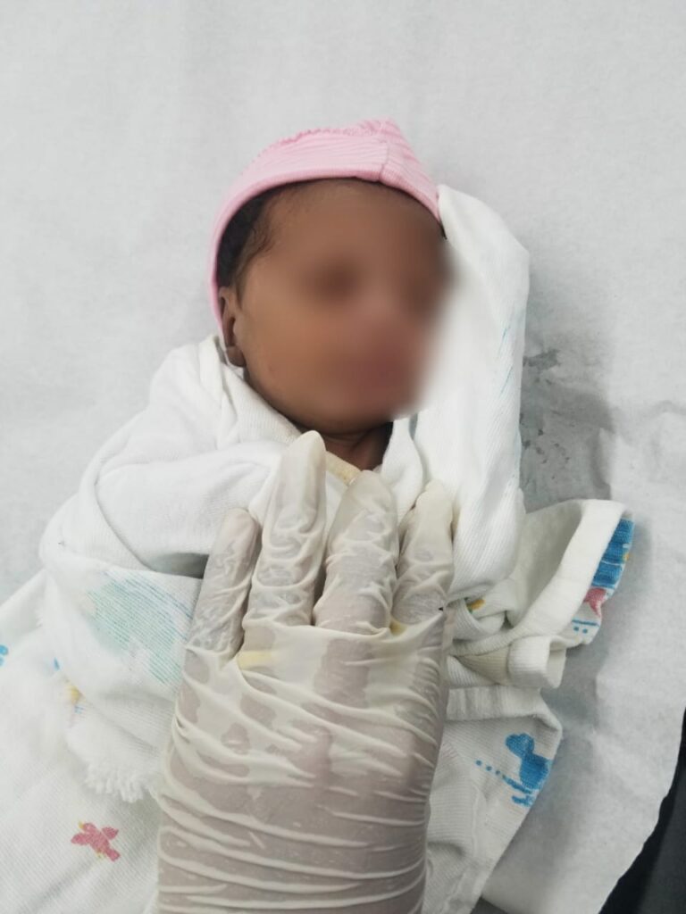 Envuelta en sábanas estaba la infante de nacionalidad aparentemente haitiana. Se encontró en buen estado de salud.